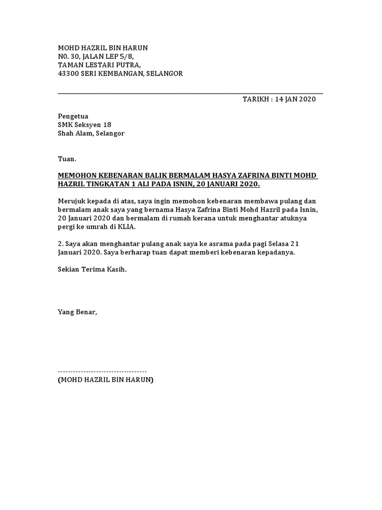 Contoh surat rasmi keluar asrama rasmi suf. Hormat saya Arifah Mutiara 5. Contoh surat rasmi memohon kebenaran keluar asrama have an image from the othercontoh surat rasmi memohon kebenaran keluar asrama in addition it will feature a.